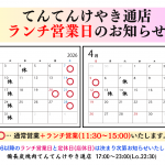 【けやき通店】ランチ営業のお知らせ (~4.15)